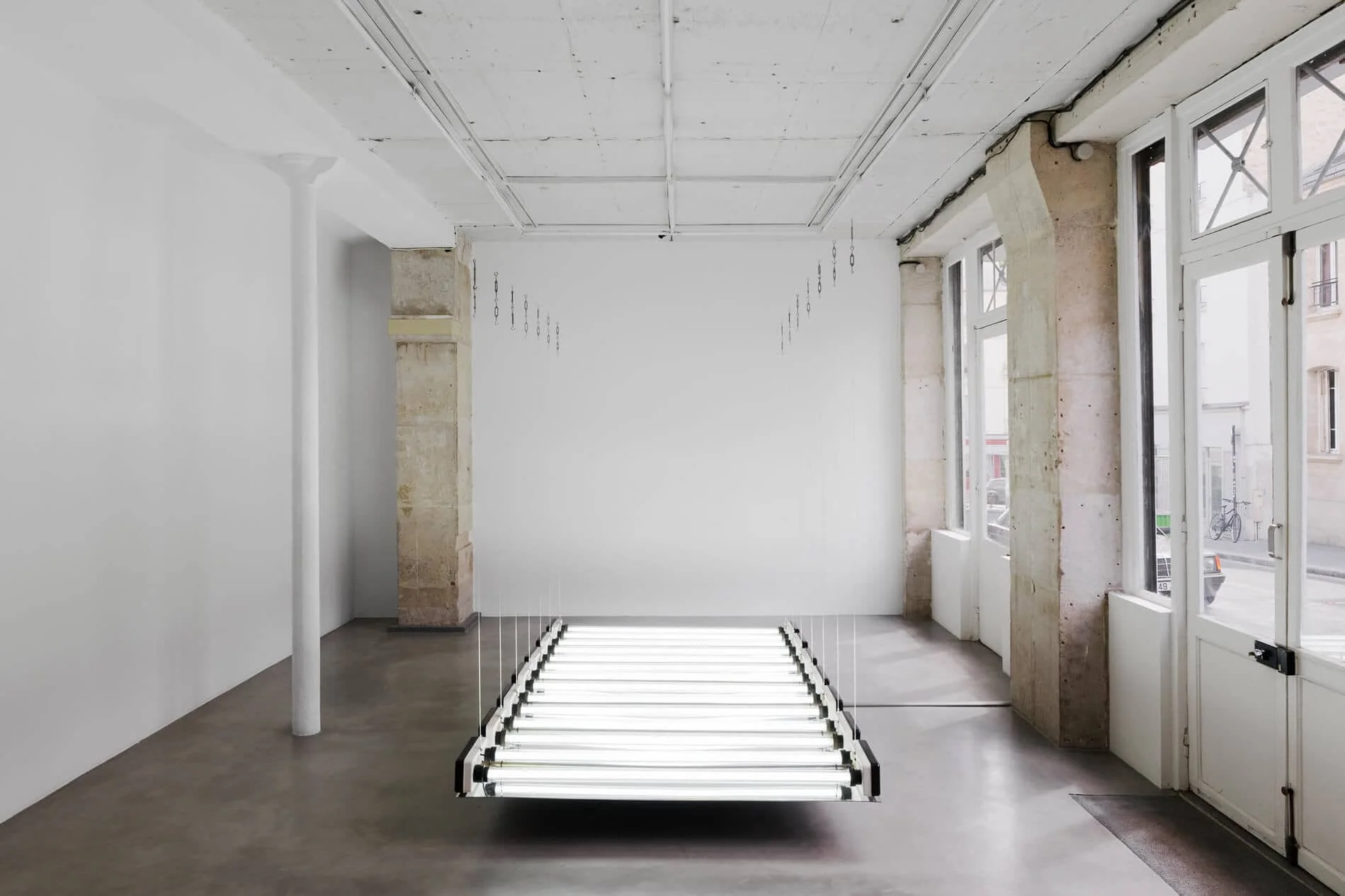 14 fluorescent tubes, mirror, microphones, amplifier, 166x2656cm