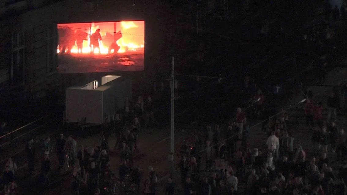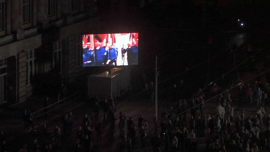 This video / sound installation examines the slogan “We are the people” with regard to its social relevance in 1989 and today, focusing on its inherent meaning in the light of the misuse it experiences from society and the media, on the one hand, and its romantic idealisation on the other. At the same time the piece inquires into the current state of affairs in Europe and discovers the local in the European context, and vice versa.